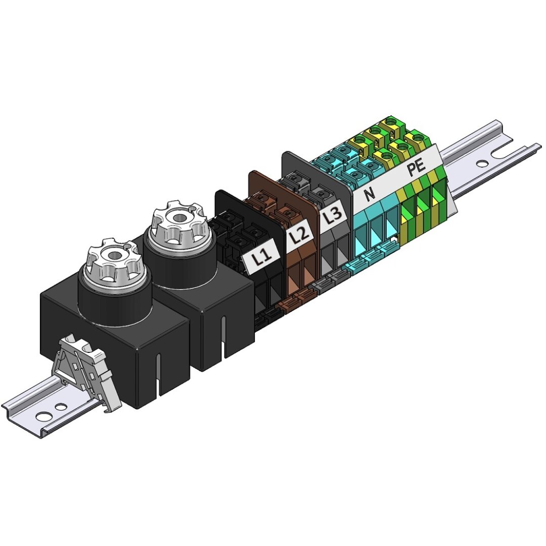 | Composition of the terminal block (Main terminal for PE conductors) | 3 x RSA PE 16 A |