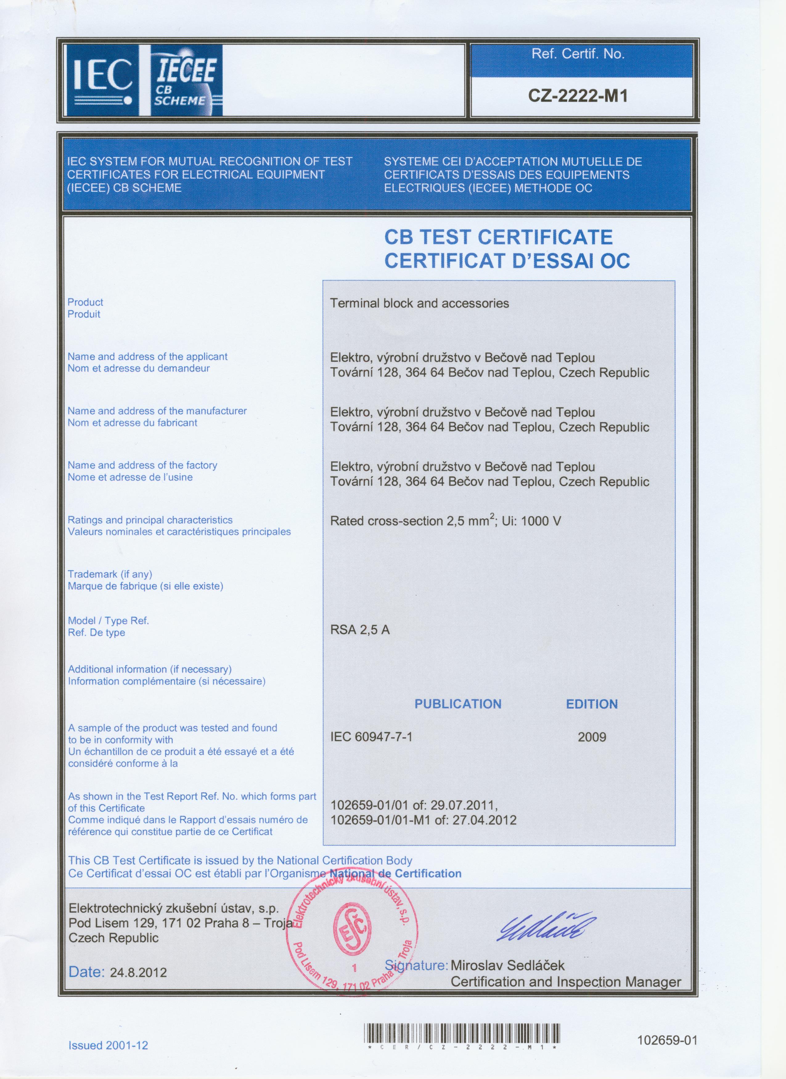 | Insulating body | Polyamide PA 6, flammability V0 halogen free |