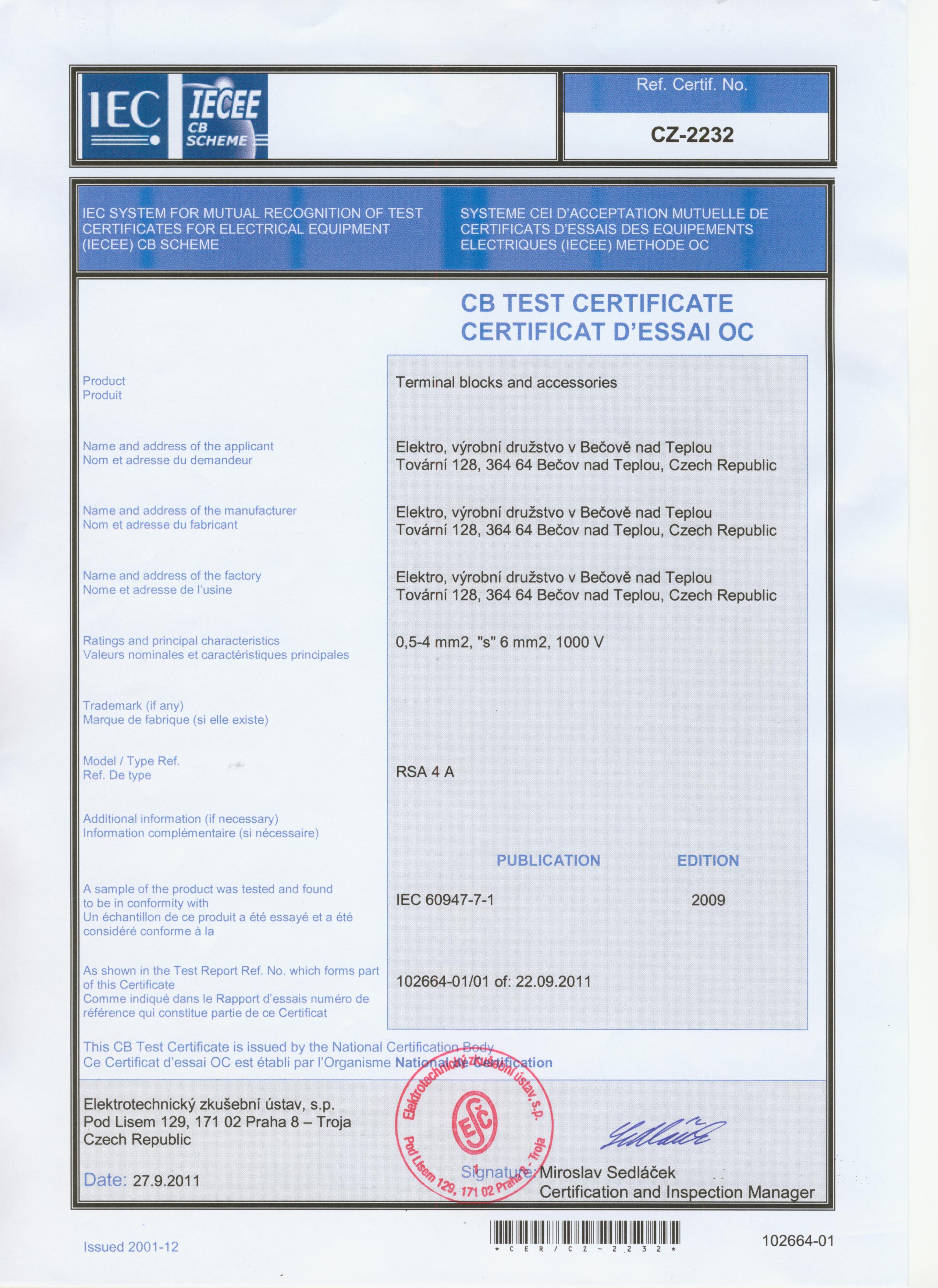 | Testing | IEC 60947-7-1 |